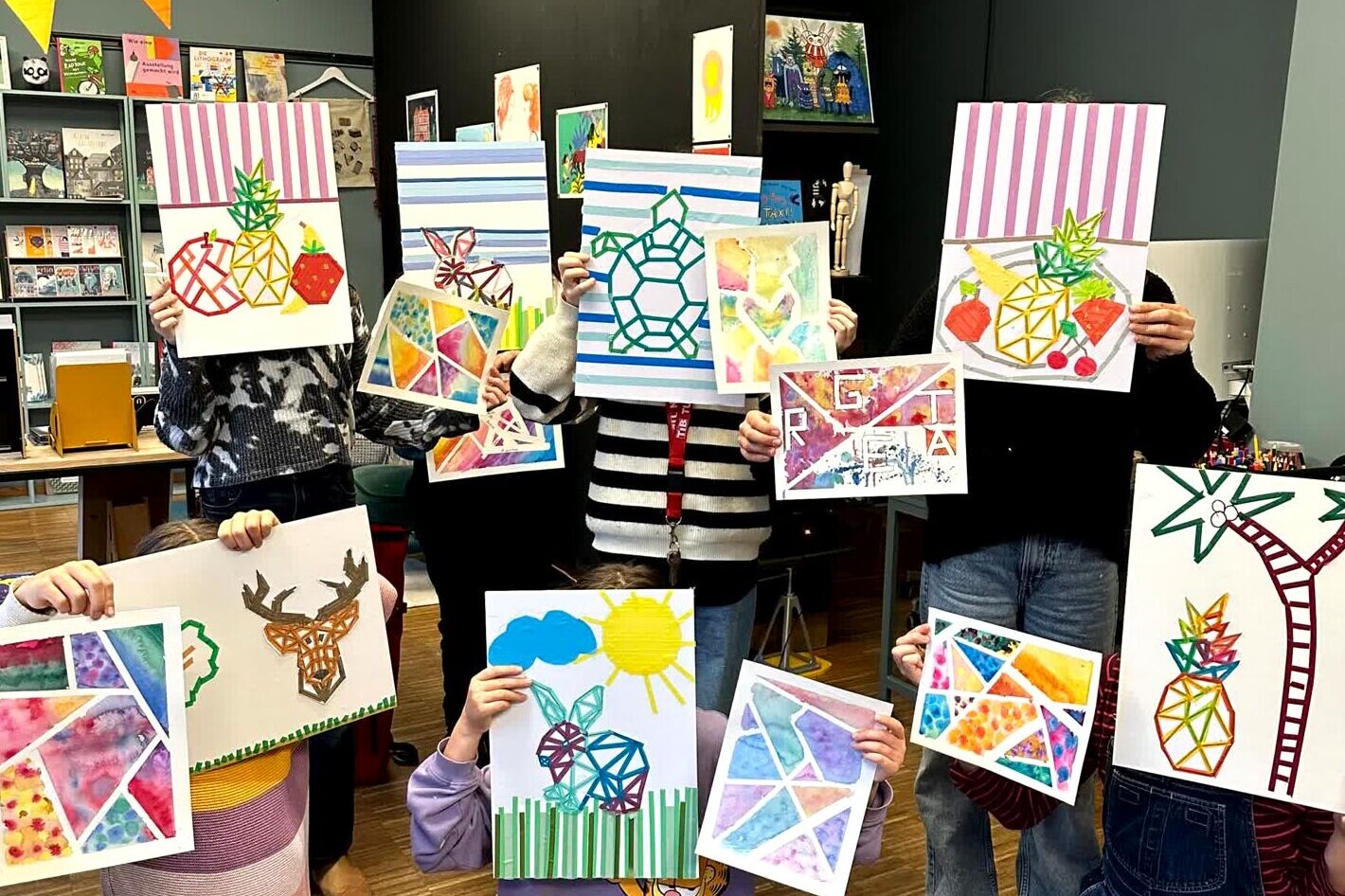 In wechselnden Kunstausstellungen werden die Werke unserer Künstler:innen vorgestellt. Diese Motive sprechen vor allem Kinder an.